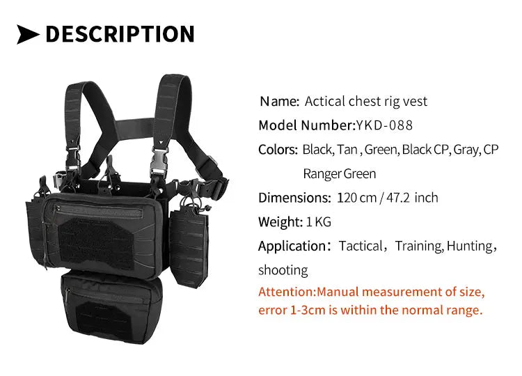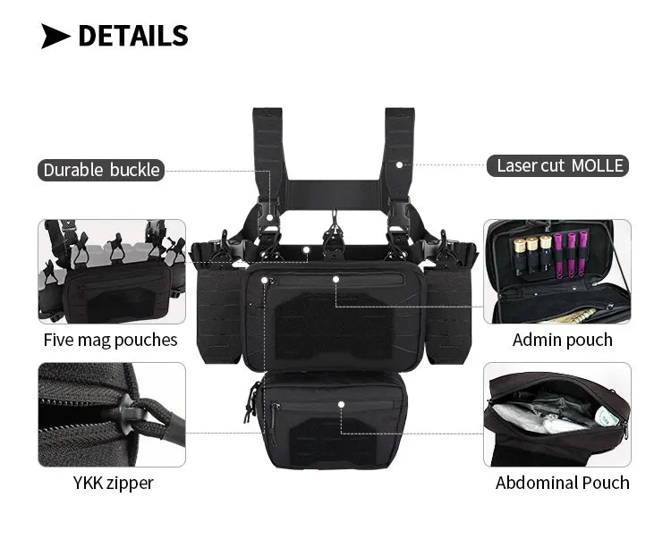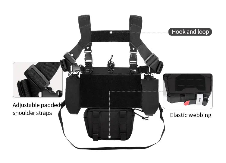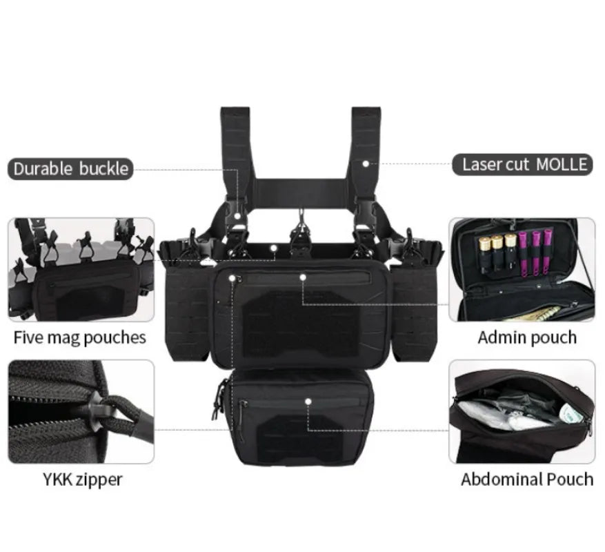 YAKEDA Tactical Chest Mini Rig Vest with Magazine Pouch Adjustable Detachable Laser-cutting Molle Modular Chest Vest